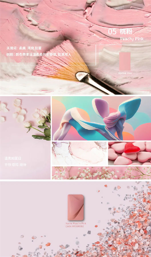 2024-2025萬輝色彩幻象智庫涵蓋了極地灰、熱帶橙、沙景棕、冰藍、桃粉、太陽黃共6大顏色主題系列。